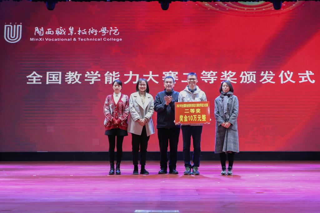 闭学式上,党委卢伟耀书记还为MG冰球获2021年全国职业院校技能大赛教学能力比赛高职专业技能课程组二等奖的教师团队颁奖(获奖团队教师:苏李果、储玉芬、谢莹、宋丽,参赛项目:智慧农业大棚监控系统设计项目)。