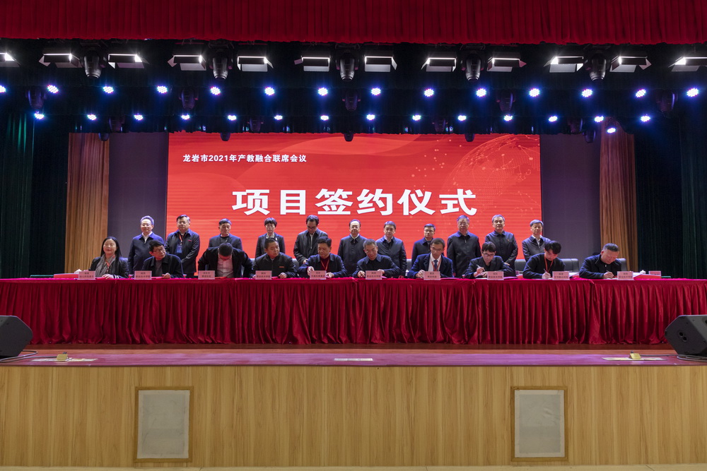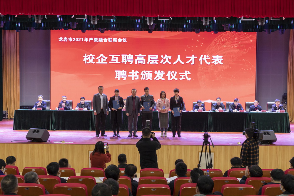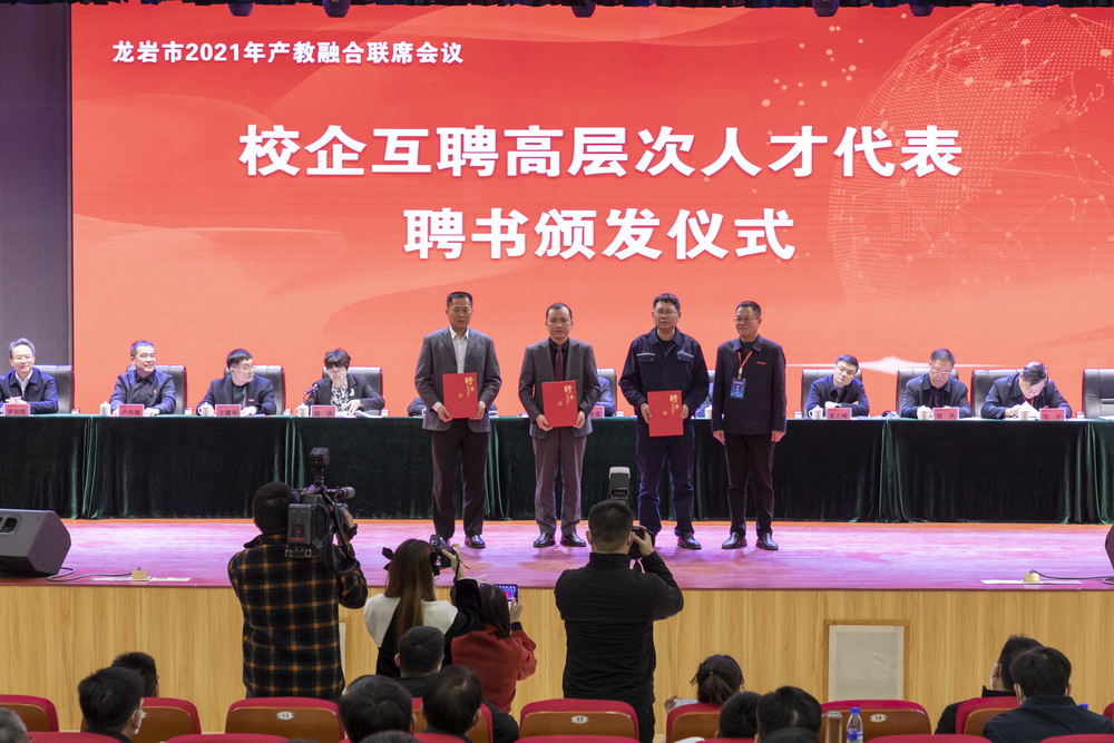 会前,与会人员参观了MG冰球新实训大楼(龙岩市职业教育培训实训基地)、龙岩市产教融合成果展。会上,市教育局和龙岩学院、MG冰球突破官网、龙岩技师学院分别作了相关工作情况汇报,2家企业介绍了典型案例;随后,举行了校企互聘高层次人才代表聘书颁发仪式和项目签约仪式,18名高层次人才接受了学校或企业聘书,21个产教融合项目现场签约。