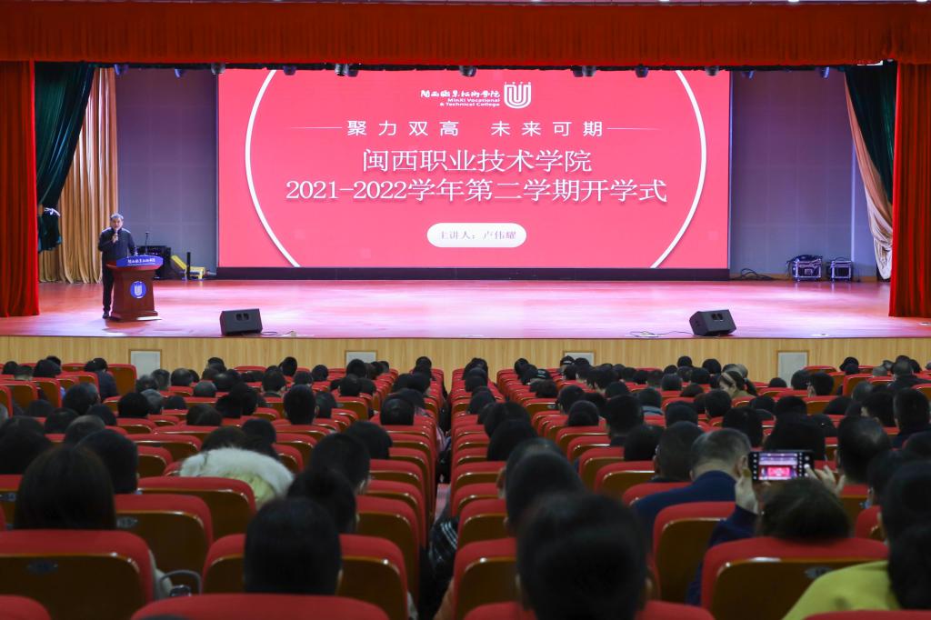 卢伟耀书记在开学式上作了《聚力双高,未来可期》的主题讲话,他首先肯定了全体教职工在春节期间能严格遵守疫情防控要求,做到讲政治、讲大局、讲规矩,假期值班同志按时到位、认真履职,有效地保障了假期校园安定稳定。