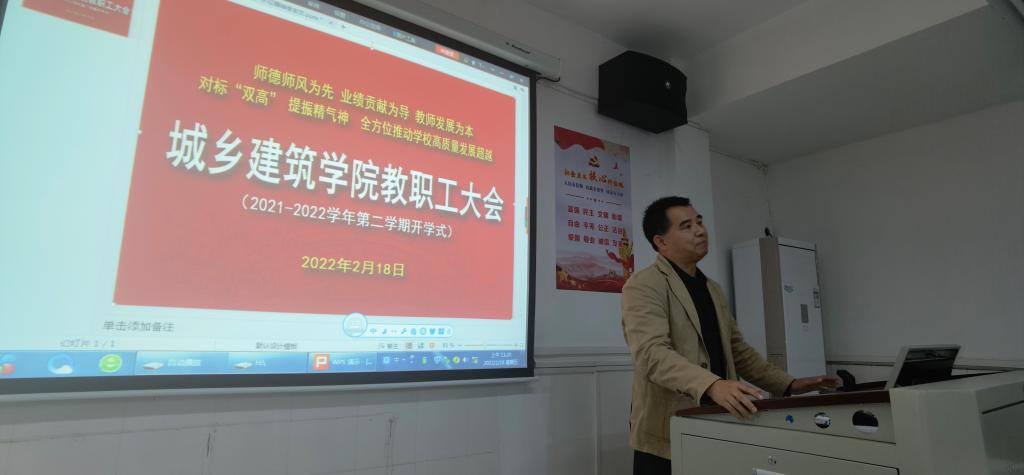 2月18日,城乡建筑学院召开全体教职工大会,贯彻落实学校开学式会议精神,部署新学期主要工作。