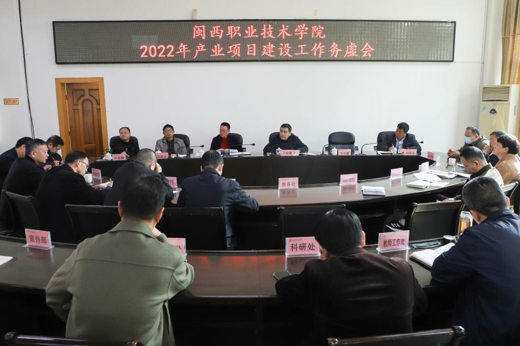 2月16日上午,校党委卢伟耀书记主持召开2022年产业项目建设工作专题会,学校领导班子成员,各二级学院、继续教育学院主要负责人,组织人事处、教务处、发展规划与质量控制处、对外交流合作处、科研处等相关职能部门主要负责人等参加了会议。