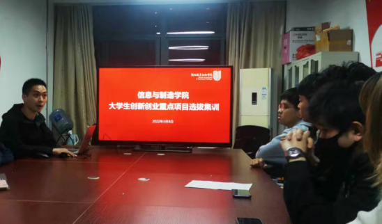 3月8日晚,信息与制造学院在实训楼603室开展2022年大学生创新创业重点项目选拔集训活动。