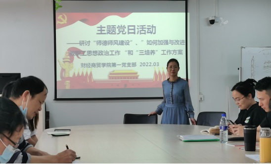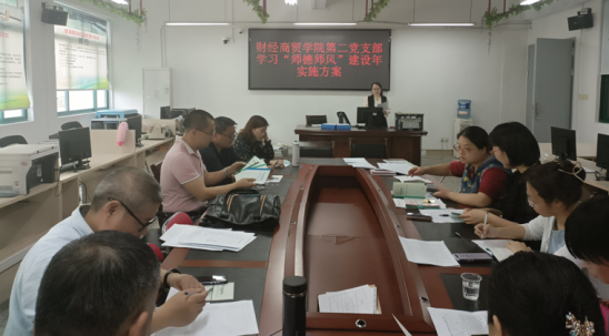 为加强教师队伍建设,提高教师自身修养,弘扬新风正气,增强教书育人,以身立教的社会责任感和使命感,3月15日下午,财经商贸学党委所属各支部在实训楼召开"师德师风建设年"学习宣传会议。会议由各支部书记主持,支部全体党员参会。
