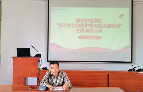 3月16日上午,医学护理学院举办“我谈学校和医护学院高质量发展”青年教师演讲活动。校党委书记卢伟耀,党委副书记李贞鑫,副校长卢兆梅到场指导,相关部门负责人及医护学院班子成员、党委委员、专业主任、党支部书记参加演讲活动。