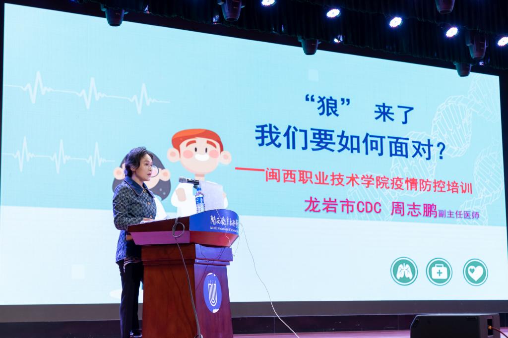培训会邀请到龙岩市疾控中心副主任医师周志鹏、曾菊香医师到会场进行新冠疫情防控知识讲座并现场演示指导二级防护服穿脱程序。
