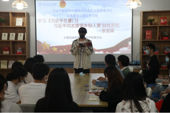 3月17日晚,MG冰球在团结里12栋新华书店(闽大分点)开展“庆建团百年 谱青春华章”主题线下读书会。校党委书记卢伟耀,马克思主义学院负责人,校团委负责人,相关专业教师及习近平新时代中国特色社会主义思想读书社和马克思主义理论学习社共40余名成员参加了读书会。