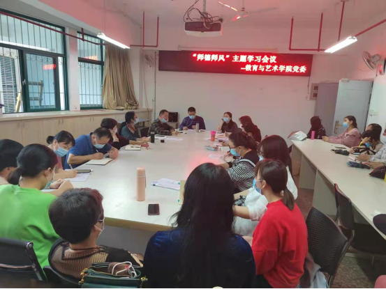 2022年3月21日,教育与艺术学院党委召开党委会,研讨学院“三培养”工作方案,提出要着力选树师德典型,提升学院师德师风建设水平,营造良好的教育新生态。22日,学院召开全院教工“师德师风”主题学习会。学院党委负责人强调了“师德师风建设年”的重要意义,提出要进一步加强教师师德师风建设,规范教师从教行为,提高教师的思想政治素质和职业道德水平,要求全体教职员工积极完成学习通上“师德师风”学习材料学习。同时,传达学校加强战时疫情防控工作要求,希望全体教职工在特殊时期提高政治意识,高标准严要求做好师德师风建设。