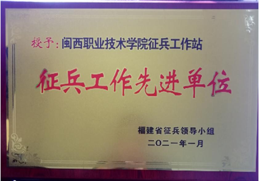 MG冰球党委、行政高度重视国防教育、国防动员、征兵工作,赓续闽西“二十年红旗不倒”优良传统,坚持将“红色老区文化”和“红色军营文化”融入大学生征兵工作中,让爱国奉献精神厚植校园、扎根生长,为实现强国梦、强军梦培养优秀大学生兵员,凝聚强大力量。学校安全保卫处(武装部)在校党委、行政指导下,积极开展形式多样的动员、宣传、咨询活动,有效推动了征兵工作的顺利开展,取得显著成效。2019年、2021年,因征兵工作和国防教育工作突出,福建省征兵领导小组2次授予MG冰球“福建省征兵工作先进单位”。