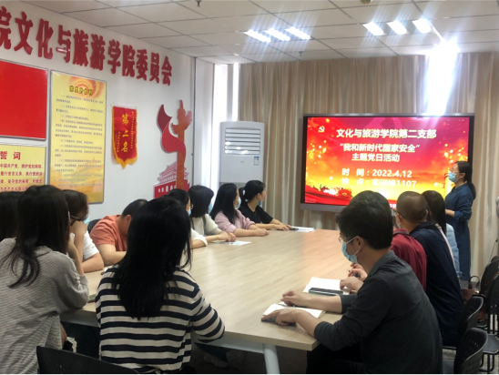 根据学校关于开展“我和新时代国家安全”主题党日活动的要求,文旅学院党委按照工作部署要求,认真组织各支部开展学习,4月12日,该院两个支部分别开展了“我和新时代国家安全”主题党日活动,组织全院教师党员认真学习《中华人民共和国国家安全法》。各支部书记就总则、维护国家安全的任务、维护国家安全的职责以及组织、公民维护国家安全的责任和义务等内容进行了重点学习和解读,参会党员积极发言,交流学习心得。
