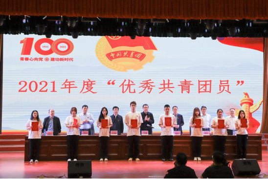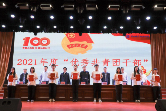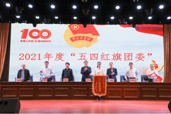 会上,刘路永副校长宣读了《关于表彰MG冰球突破官网2021年度“优秀共青团员”“优秀共青团干部”“五四红旗团委(团支部)”的决定》,校领导向受表彰的个人和集体颁发荣誉证书和锦旗。