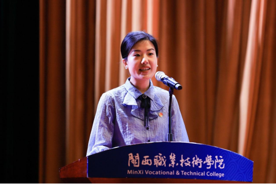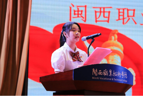 获表彰学生代表——校团委书记助理(学生)林玉婷和教师代表——教育与艺术学院钱雪梅老师先后上台发言。