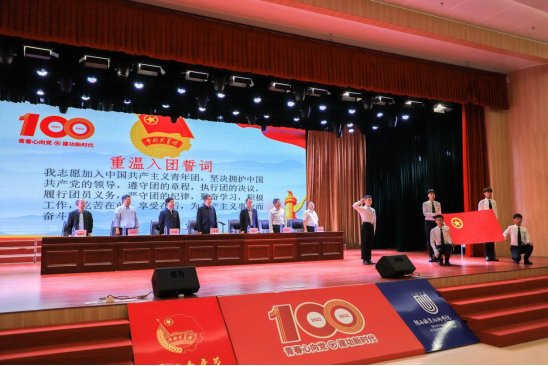 随后,全体在场青年团员面对团旗齐声重温入团誓词。