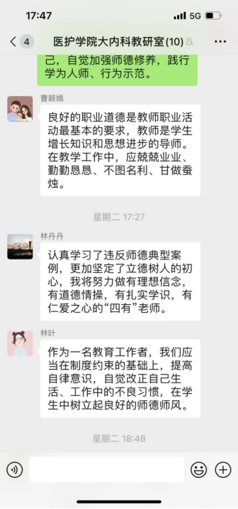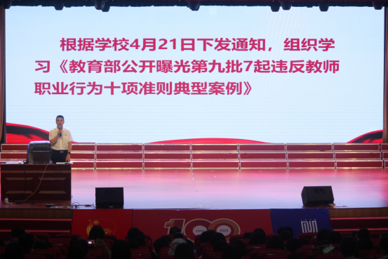 近日,医护学院组织开展师德师风警示教育系列活动,分别通过理论学习中心组学习、教研室学习研讨、全体教职工大会学习等多种形式组织全体教师深入学习《教育部公开曝光第九批7起违反教师职业行为十项准则典型案例》,积极引导教职工自重、自省、自警、自励,以案例为镜鉴,坚守纪律底线。