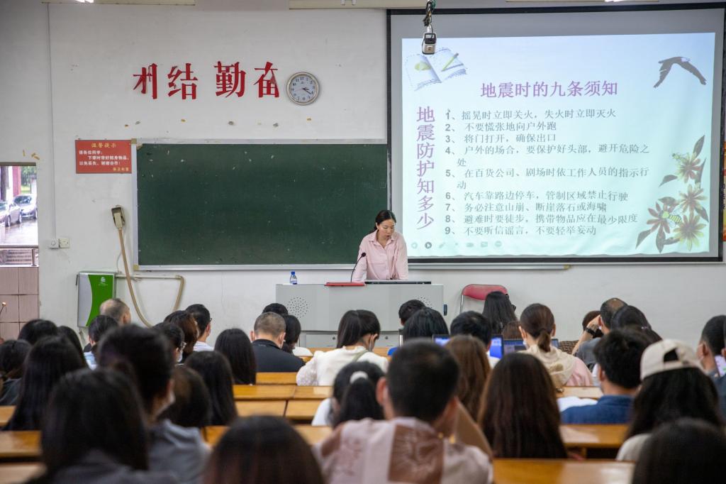 在演练现场,副校长刘路永作了讲话。他说,今年5月12日是我国第14个全国防灾减灾日,主题是“减轻灾害风险 守护美好家园”。全校师生在校党委、行政的领导下,积极贯彻落实习近平总书记关于防灾减灾救灾等应急管理重要论述和重要指示批示精神,坚持落实人民至上、生命至上理念,通过“四个一”活动,进一步增强全校师生防灾减灾意识,提高全校师生在密集场所紧急避险、自救自护和应变的能力,掌握地震、火灾等灾害来临时有效的逃生方法,提高师生应对自然灾害的应急自救逃生能力,切实保障师生生命安全、财产安全。