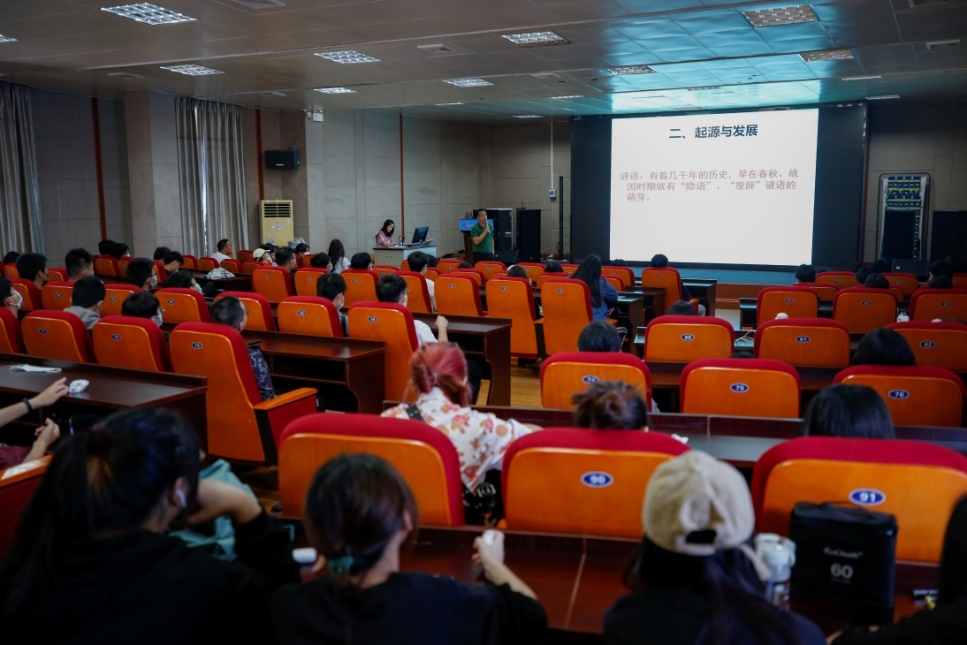 此次讲座是文化与旅游学院在本学期开展的“非遗文化进校园”系列活动之一,由“非遗传承人”工作室、“非遗.匠心”工作室、“弘毅”工作室、“团结渠上的好声音”工作室共同承办,旨在提高同学们对灯谜文化的了解,增进同学们对传统文化的认同感。