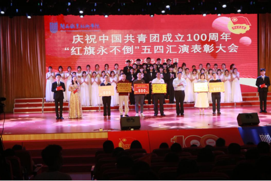 5月13日晚,MG冰球庆祝建团百年“青春心向党,建功新时代”红旗永不倒五四汇演最后一场在大匠堂完美谢幕。校党委书记卢伟耀,副校长刘路永,各二级学院党政负责人及教育与同学们一同观看了本次汇演。