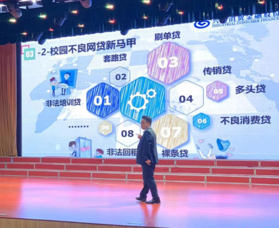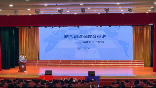 讲座以“谨防校园贷、电信诈骗及个人储蓄卡用卡安全”为主题,紧贴时代发展及大学生实际,从学生生活和切身利益出发,围绕校园电信诈骗辨识、校园非法集资辨识、校园不良网贷辨识、理性科学资金规划等四个方面介绍了金融基础知识、个人征信知识,同时还向学生讲授了贷前风险评估、贷中自我管理和贷后逾期管理的方法。蓝经理通过有奖问答等形式,与现场的学生积极互动,讲座在轻松愉悦氛围中达到了预期效果。