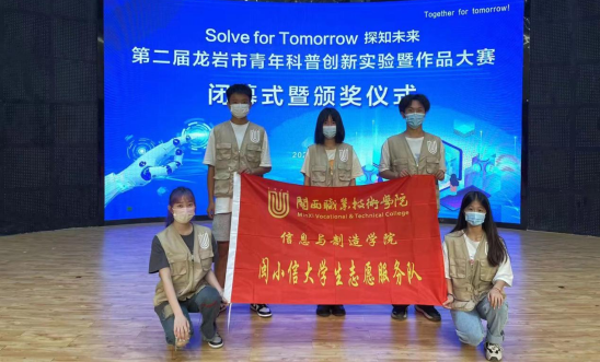 应龙岩市科学技术协会、龙岩市科技馆的邀请,MG冰球信息与制造学院闽小信志愿服务队派出多名师生参与第二届龙岩市青年科普创新实验暨作品大赛的疫情防控、现场组织、项目评审、竞赛结果播报、颁奖仪式等科技劳动志愿服务工作。林福、陈元招两位老师作为评委,评审第二届龙岩市青年科普创新实验暨作品大赛智慧社区项目。