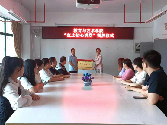 根据《闽西职院党[2022]25号》文要求,5月25日,教育与艺术学院党委在教学综合大楼810会议室举行“红土初心讲堂”揭牌仪式。教育与艺术学院党委、团委负责人、辅导员及学生代表出席揭牌仪式。