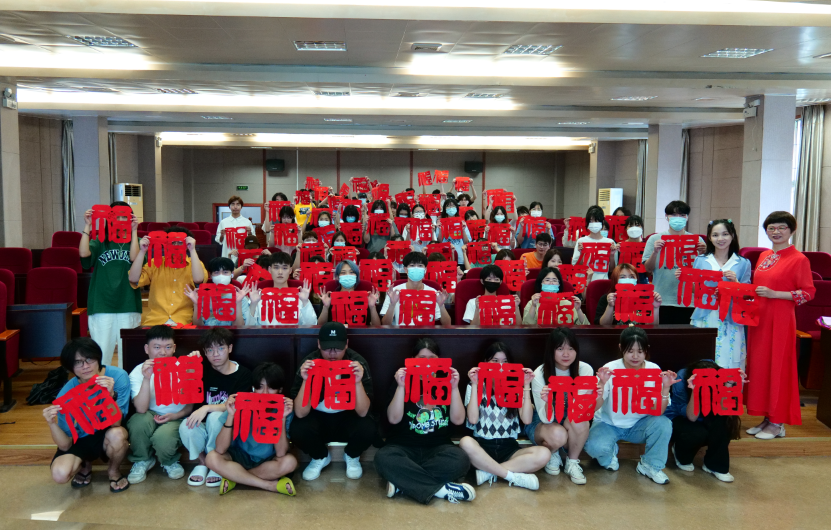 讲座中,林红缨老师用质朴的语言介绍了剪纸的基本工具、剪纸的表现手法和剪纸符号,列举了龙岩剪纸中最常见的巧头花的各类图案,讲述了她在创作剪纸作品背后的故事。之后,她带领全场同学一步一步剪“福”字,“非遗传承人”工作室学生辅助教学。同学们学得专注认真,林老师指导得耐心细致,每个同学都剪出了满意的“福”字。