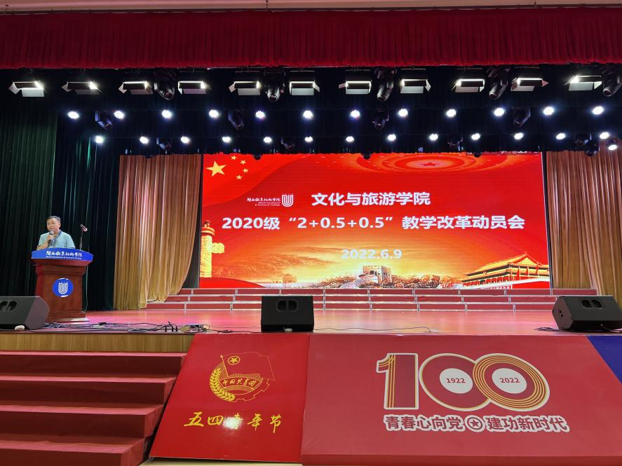 6月9日下午,文化与旅游学院在大匠堂召开“校企双元育人”教学改革动员会。开展“校企双元育人”教学改革是落实学校“一线两双三三”人才培养模式的重要举措,是开展校企双环境合作育人,提高学生实践动手能力,进而提高就业竞争力的有效措施。根据学校《实施“校企双元育人”人才培养模式教学改革指导意见》的文件精神,我院2020级各专业拟开展“校企双元育人”的教学改革。