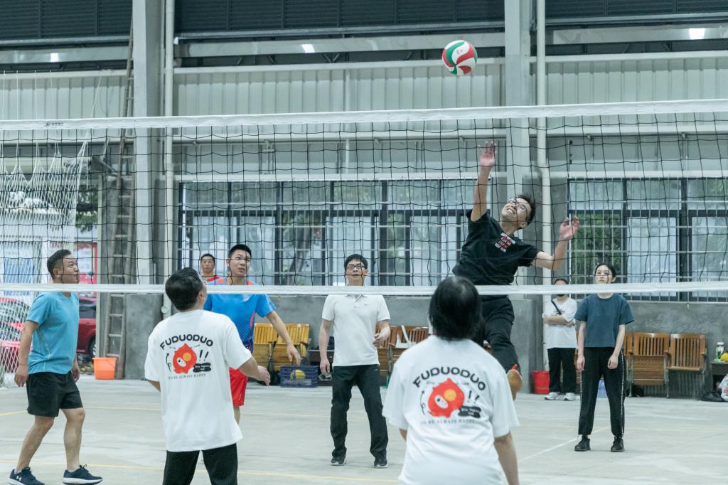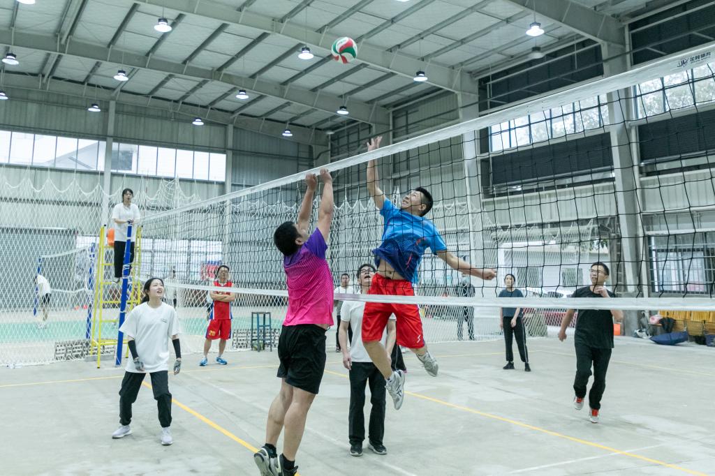 此次比赛采用小组循环赛进行。赛场上,运动员们本着“友谊第一、比赛第二”的原则,全身心投入到比赛当中。迅猛的发球、巧妙的拦网、精彩的扣杀,无不体现着队友之间的默契。每场比赛,选手们奋力拼搏的精神,感染着在场每一个人,随着比分的交替上升,现场气氛愈加热烈,啦啦队和观众热情洋溢的加油声、喝彩声和掌声此起彼伏。