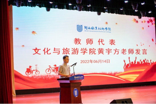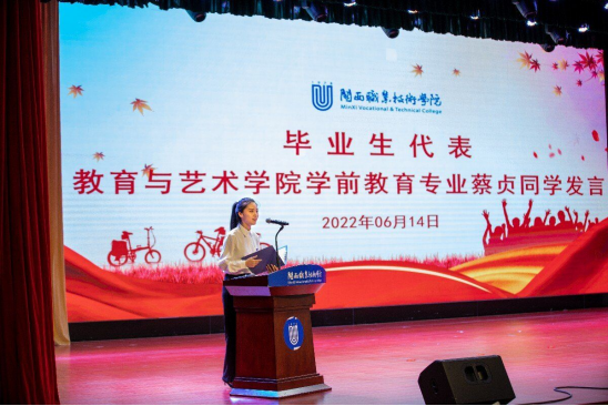 梁俊平校长发表了讲话,他代表学校向全体毕业生顺利完成学业表示了祝贺,并向大家提出了殷切的希望和要求。他希望同学们胸怀家国,始终与党和国家同呼吸共命运,把小我融入大我,将“青春梦”融入“中国梦”;希望同学们发扬“弘毅笃行,技精业成”的校训,坚持知行合一,行胜于言,干一行、专一行、精一行,成为各行各业的“能工巧匠”“大国工匠”;希望同学们立足“两个大局”,心怀感恩,向阳奔跑,在创新中勇立潮头实现青春年华的真正价值意义。