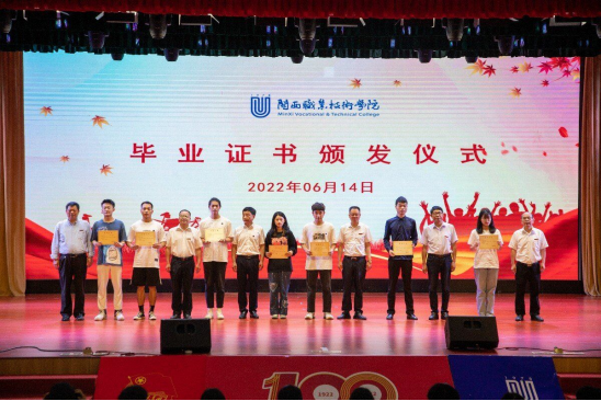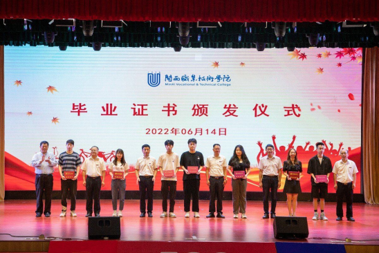 会上,吴新业副院长宣读了关于表彰2022届优秀毕业生及五好学生、优秀学生干部、工作积极分子的决定;梁俊平、李贞鑫、吴新业、刘路永、卢兆梅、温献荣等校领导为优秀毕业生代表颁发了获奖证书和毕业证书。