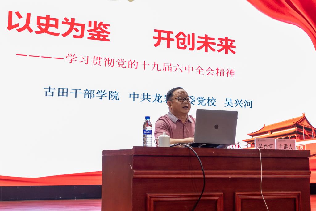 6月14日下午,中共MG冰球突破官网委员会2022年科级及以上干部学习贯彻党的十九届六中全会暨省第十一次党代会、市第六次党代会精神培训班开班。本次培训班邀请了古田干部学院、龙岩市委党校党史党建教研部部长吴兴河副教授以《以史为鉴开创未来——学习贯彻党的十九届六中全会精神》为题,为全校科级及以上干部作开班第一讲。