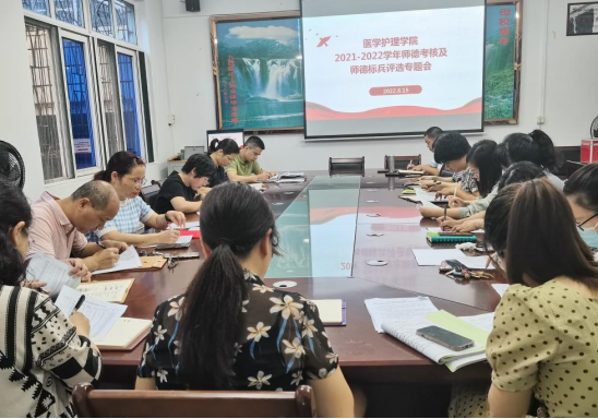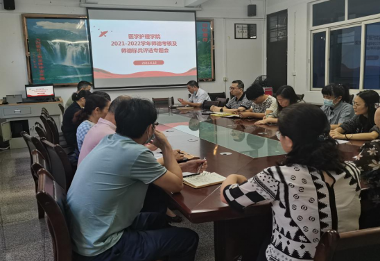 6月15日上午,医护学院召开2021-2022学年度教师师德考核及师德标兵推荐工作会。医护学院党政领导、专业主任及教研室主任等师德评议工作小组成员参加会议。会议由医护学院党委负责人主持。