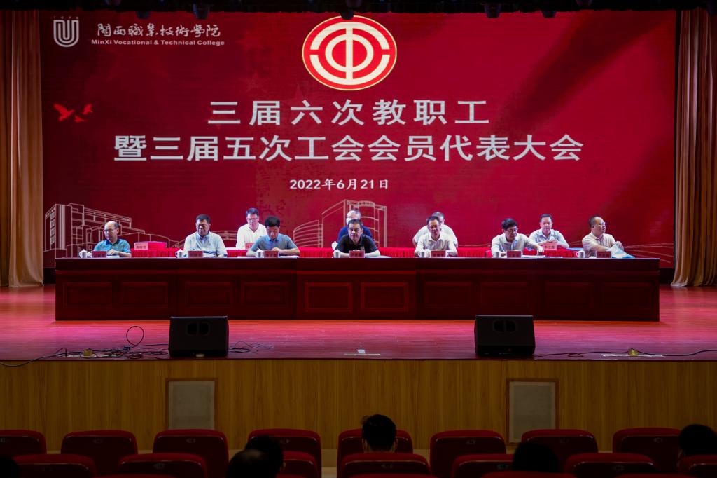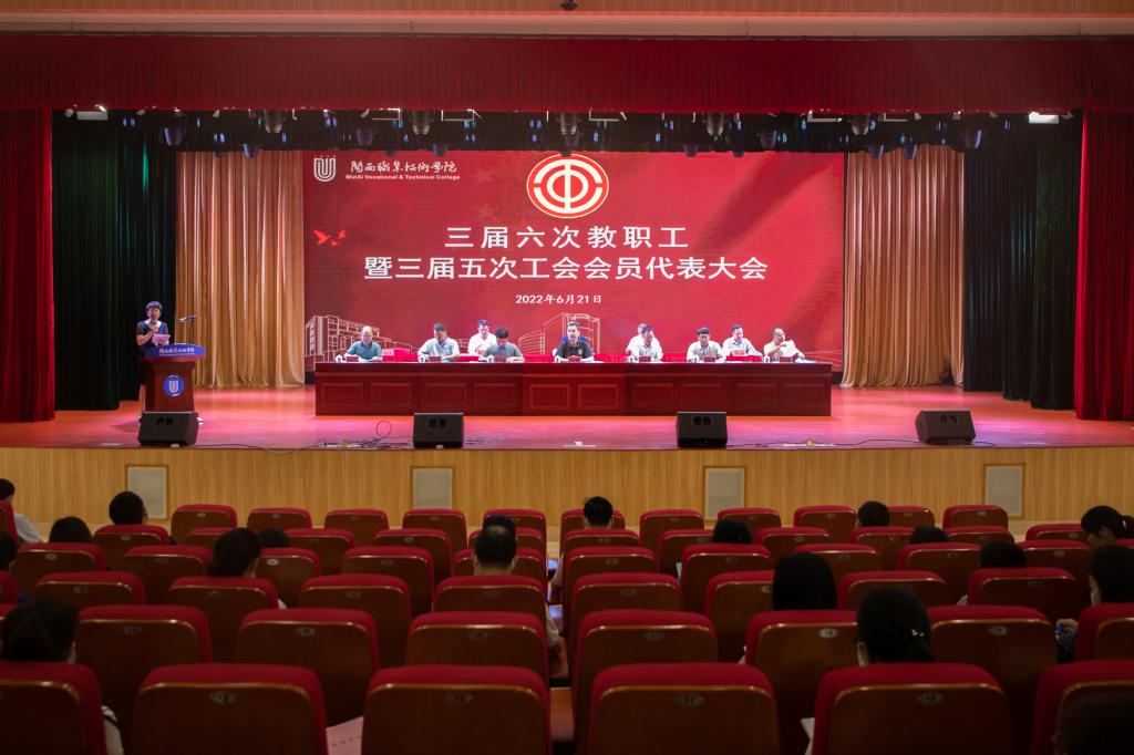 6月21日上午,MG冰球三届六次教职工代表大会暨三届五次工会会员代表大会在大匠堂召开。校领导卢伟耀、梁俊平、李贞鑫、吴新业、刘路永、卢兆梅、温献荣出席会议,“两代会”正式代表、列席代表140余人参加会议。