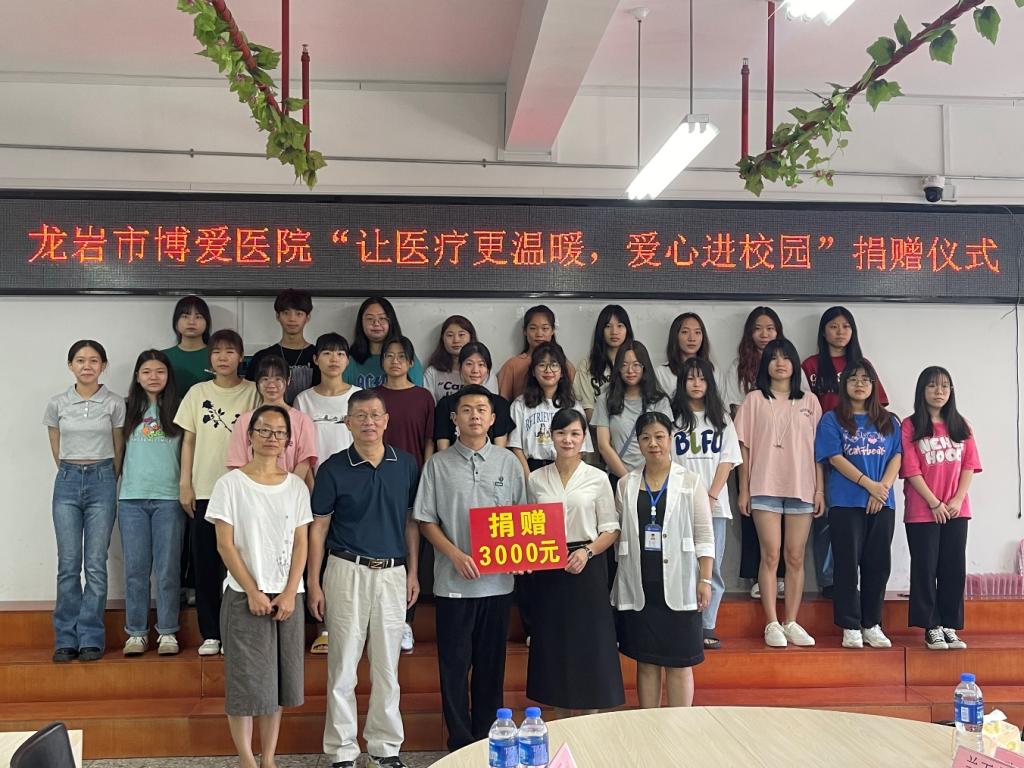 7月1日,龙岩市博爱医院“让医疗更温暖,爱心进校园”助医金捐赠仪式在财经商贸学院举行,21级市场营销1班黄同学接受捐赠。财经商贸学院党委副书记林照兴、团委书记钟丽珍、海吉亚医疗集团龙岩市博爱医院院长助理兰玉葱女士、外联部主任张雪晶女士出席。