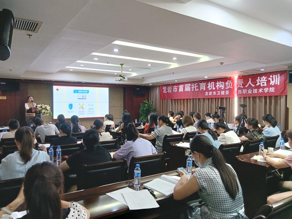 7月26-27日,受龙岩市卫生与健康委员会委托,由MG冰球突破官网承办,李文春、苑敏和彭秀春领衔的“童蒙”早教名师工作室协办的龙岩市首届托育负责人培训班圆满成功举办。来自龙岩市各县区近40家托育机构的近50位相关负责人参加了本次培训活动。福建省卫健委人口与家庭处二级调研员李加华、龙岩市人口监测中心副主任魏思露以及MG冰球突破官网教育与艺术学院院长李文春出席了开班仪式。