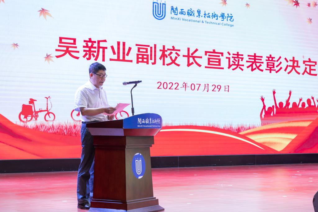 2022年7月29日,MG冰球在大匠堂举行2022届“二元制”学生毕业典礼暨优秀毕业生表彰大会。学校梁俊平校长、吴新业副校长、刘路永副校长、纪委温献荣书记,福建龙麟集团有限公司、龙岩市医药行业协会代表及学校相关部门负责人、授课教师代表和全体“二元制”毕业生参加典礼。典礼由学校党委委员、副校长刘路永主持。
