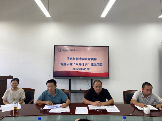 为推进“双高计划”建设项目进度、确保建设项目高质量完成,8月10日下午,信息与制造学院党委在辛耕楼205会议室召开“双高计划”建设项目推进会。学院党政领导、党委委员、党支部书记、专业群负责人、专业主任参加会议,会议由刘加养书记主持。