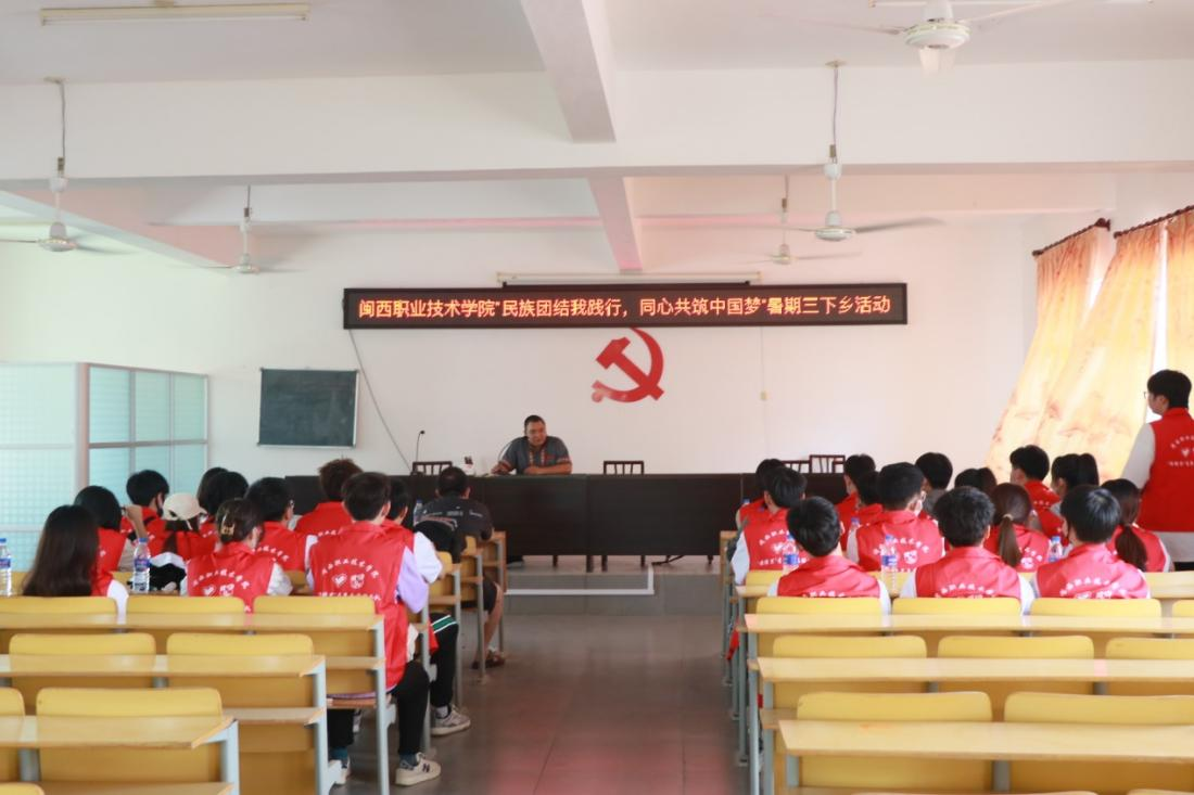 为引导学生牢固树立“休戚与共、荣辱与共、生死与共、命运与共”的共同体理念,不断铸牢中华民族共同体意识,增强中华民族伟大复兴的使命感与责任感,2022年8月25日上午,MG冰球团委组织师生38人前往龙岩市上杭县庐丰乡丰乐村,以“民族团结一家亲,同心共筑中国梦”为主题,开展2022年暑期“三下乡”铸牢中华民族共同体意识“百校进百村”专项社会实践活动。