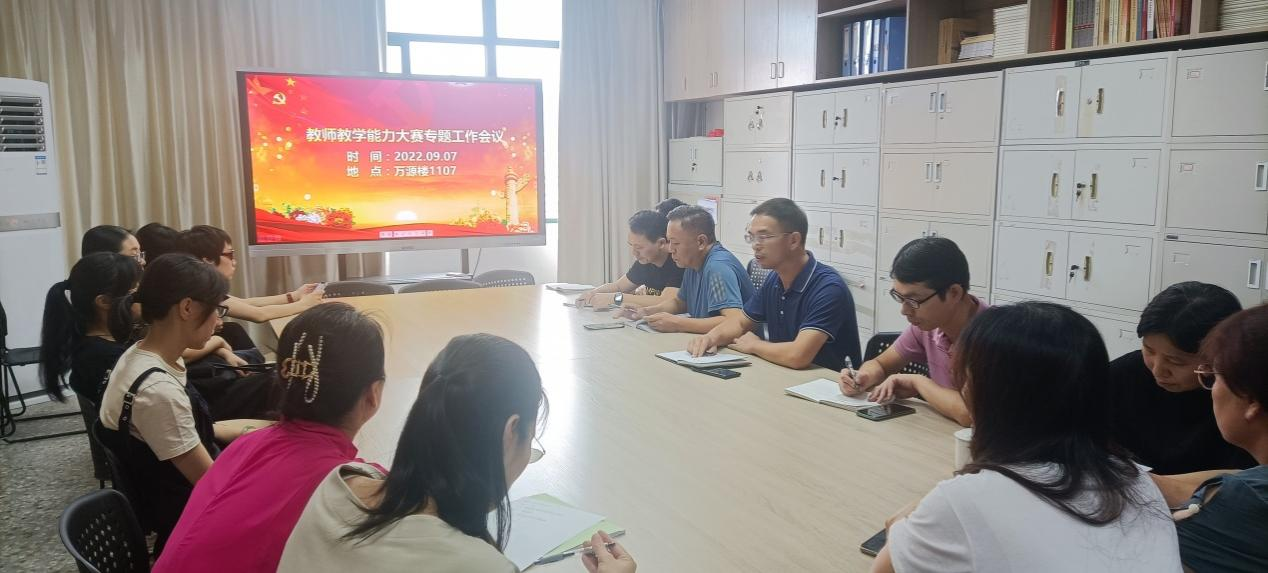 9月7日下午,文旅学院在万源楼1107会议室召开2022年教师教学能力大赛专题工作会议。院领导班子、实训管理员、教学、行政秘书、酒店管理与数字化运营专业教师及2022年国赛参赛团队教师参加会议。