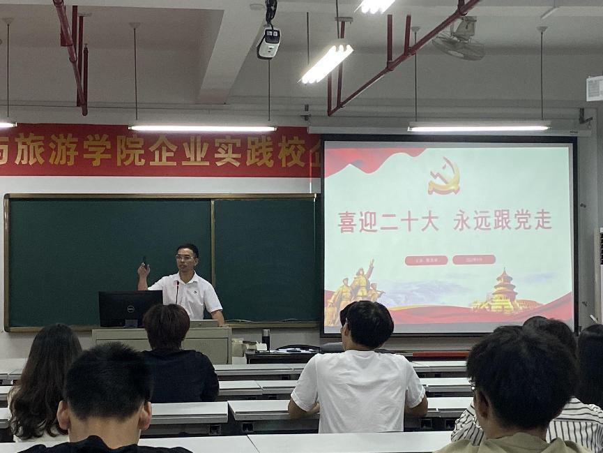 为迎接即将召开的党的二十大,2022年9月8日,文化与旅游学院行政负责人为全院入党积极分子作“喜迎党的二十大,永远跟党走”专题讲座。