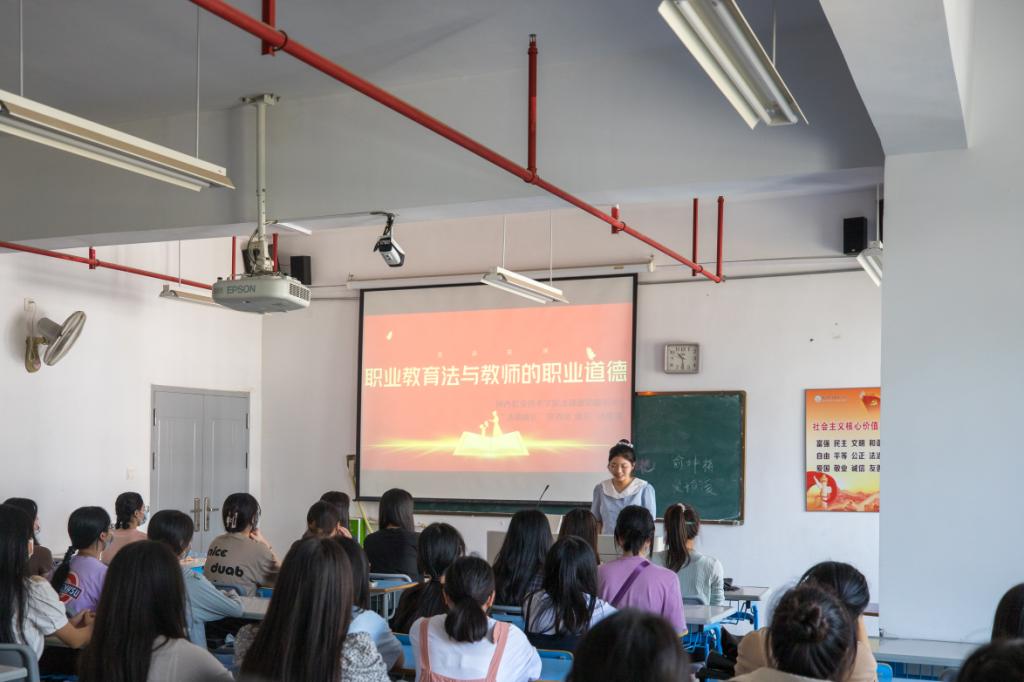 在不同的场次中,宣讲团的同学们满怀激情,结合宣讲新生的专业将普法内容个性化定制,为学弟妹们倾心奉献涵盖职业道德和职业教育法的专题教育,将严肃的法理化成温暖的关爱传递给他们。