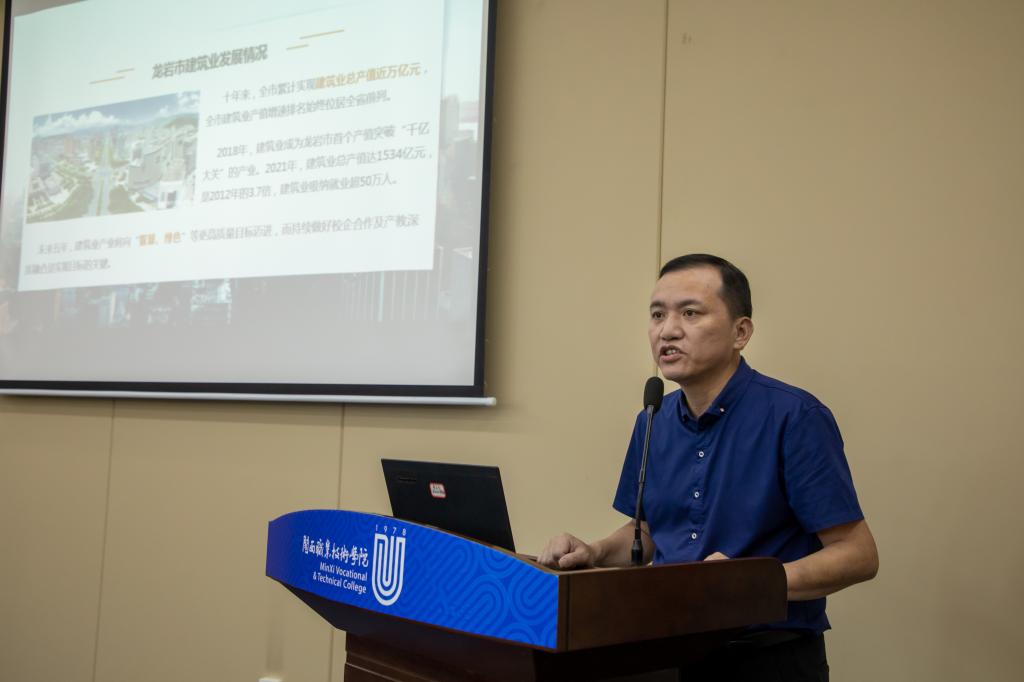 龙岩华侨职专、上杭职专、长汀职专、龙岩农校分别做了相关工作情况介绍,龙岩市建筑装修行业协会、福建德尔科技股份有限公司先后发言,介绍了校企合作典型经验。