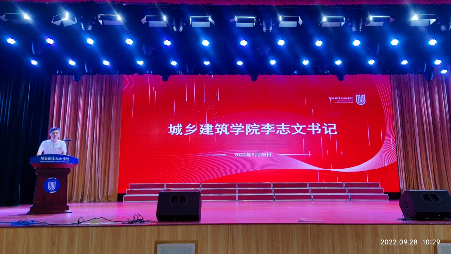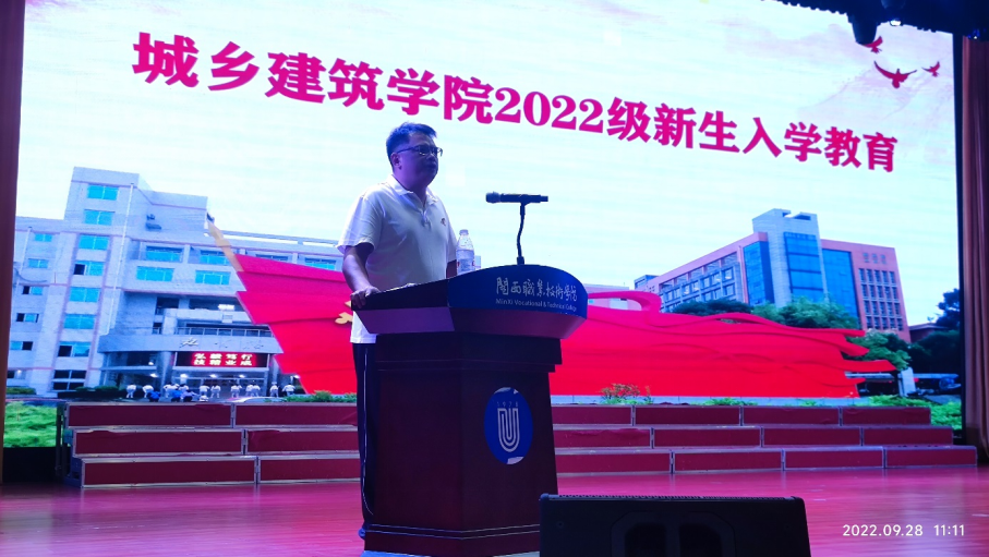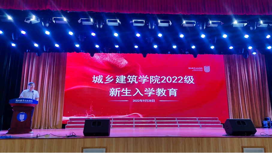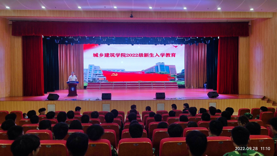 9月28日上午,城乡建筑学院2022级新生入学教育在大匠堂举行。611名新生及院领导班子成员、军训教官、辅导员、班主任、班主任助理等参加。会议由何煊强副书记主持。