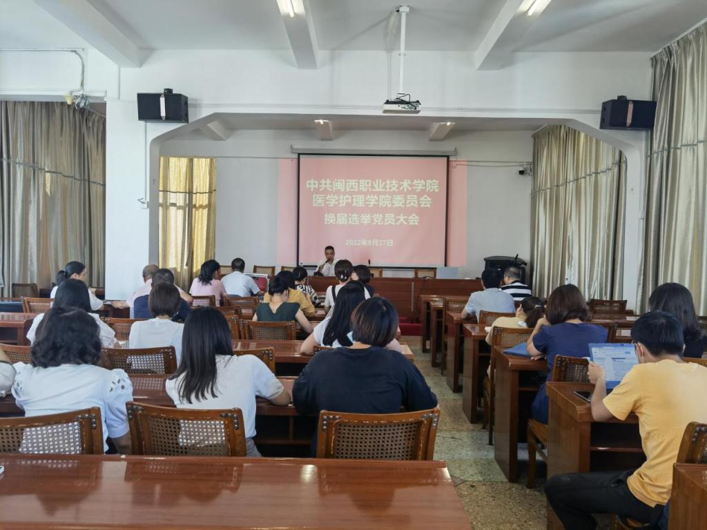 9月27日下午,中共MG冰球突破官网医学护理学院委员会换届选举党员大会在天马校区隆重召开,大会选举产生新一届学院党委委员。大会由学院党委负责人邱伟彬主持。