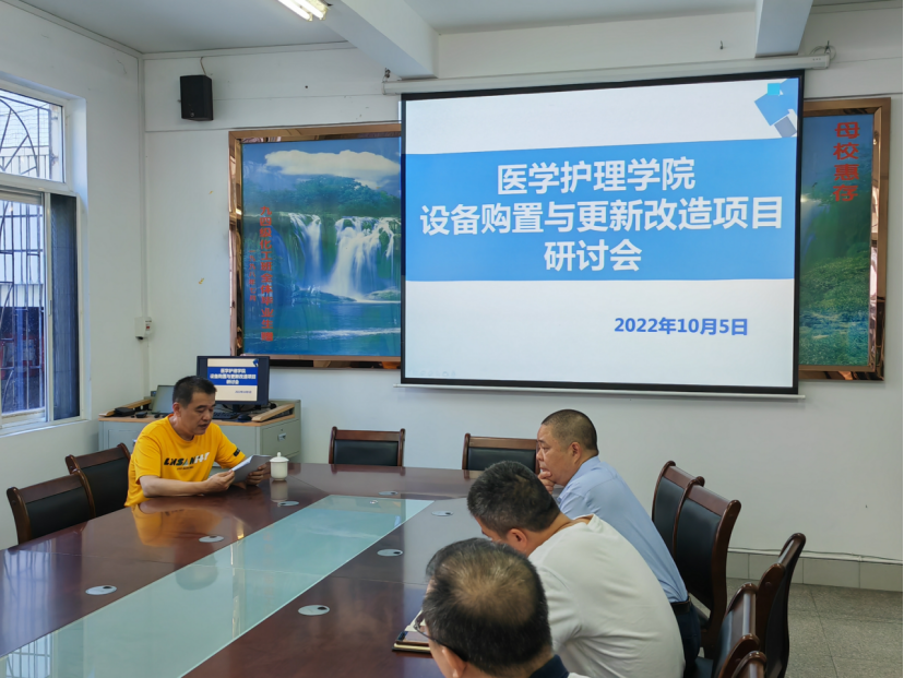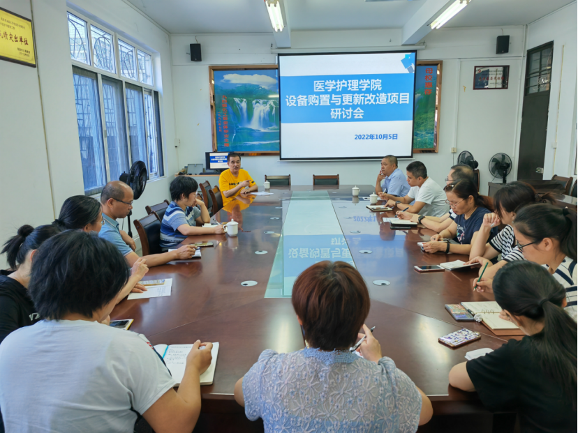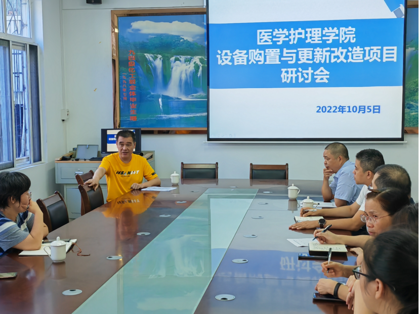 10月5日上午,校党委书记卢伟耀深入医学护理学院,参加医护学院智慧健康服务产教融合实训基地建设项目设备购置与更新改造研讨会,学院班子成员、专业主任、教研室主任及相关老师参加了研讨会。