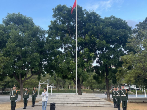 2022年10月10日上午,校学生会、校国旗护卫队、闽大团团新媒体中心三个学生组织在校本部国旗台联合举行升旗仪式,全体干部干事约300人参加。