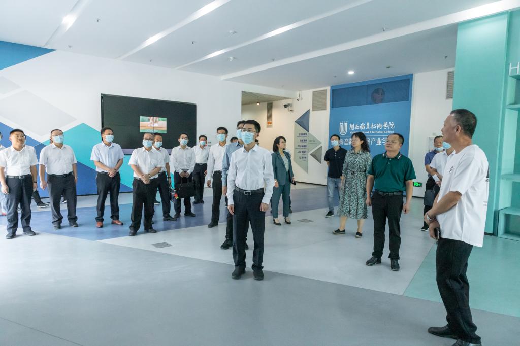 座谈会开始前,王波一行人参观了抖音数字经济产业学院。随后双方在岩声楼二楼会议室召开座谈。