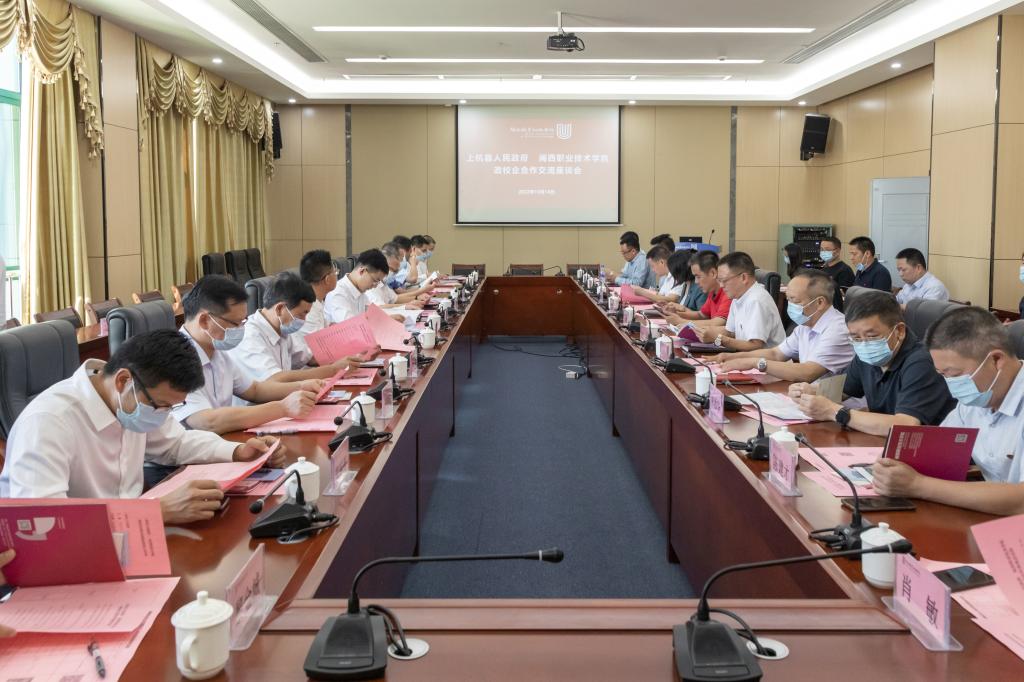 党委书记卢伟耀在会上致欢迎辞。他代表学校向上杭县委县政府及上杭县企业界优秀代表莅校交流合作表示热烈欢迎,并介绍了学校办学和为上杭县域经济开展社会培训、技术服务以及与上杭县域企业进行校企双元育人情况。