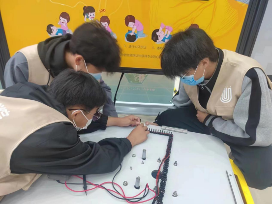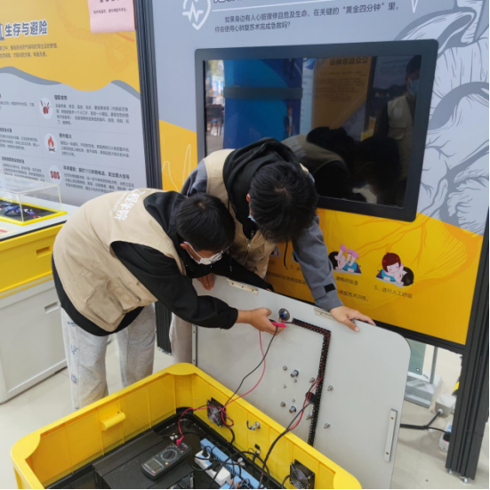 授牌仪式结束后,信息工程学院相关专业学生为科技馆展品进行了维修和维保。