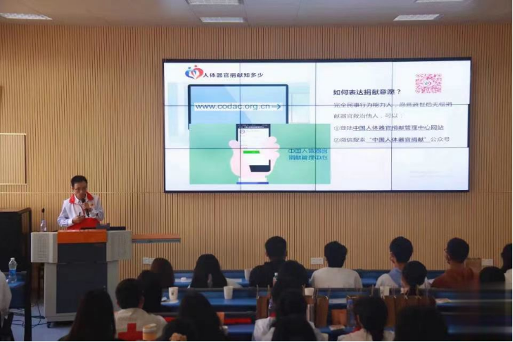 陈永根老师说,“三献”指的是献血液、献造血干细胞和献人体器官组织。他结合真实的捐献事例,系统地讲解了造血干细胞和人体器官捐献的流程,介绍了造血干细胞的移植过程。他还解释了一些有关捐献的问题,回答了同学们的各种疑虑等。
