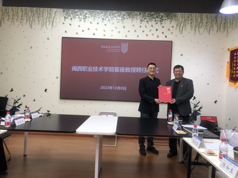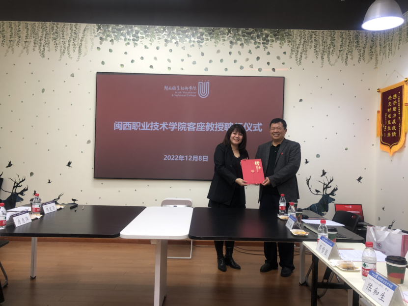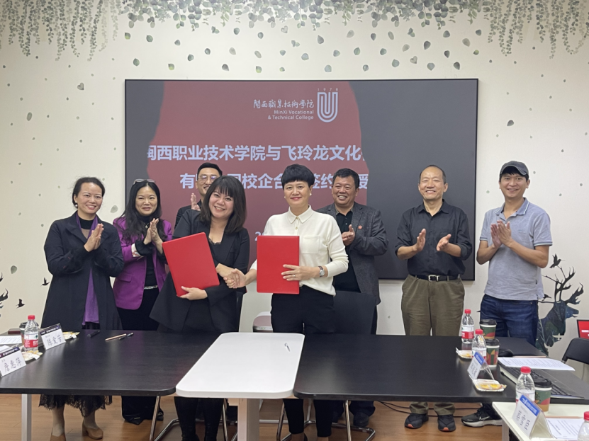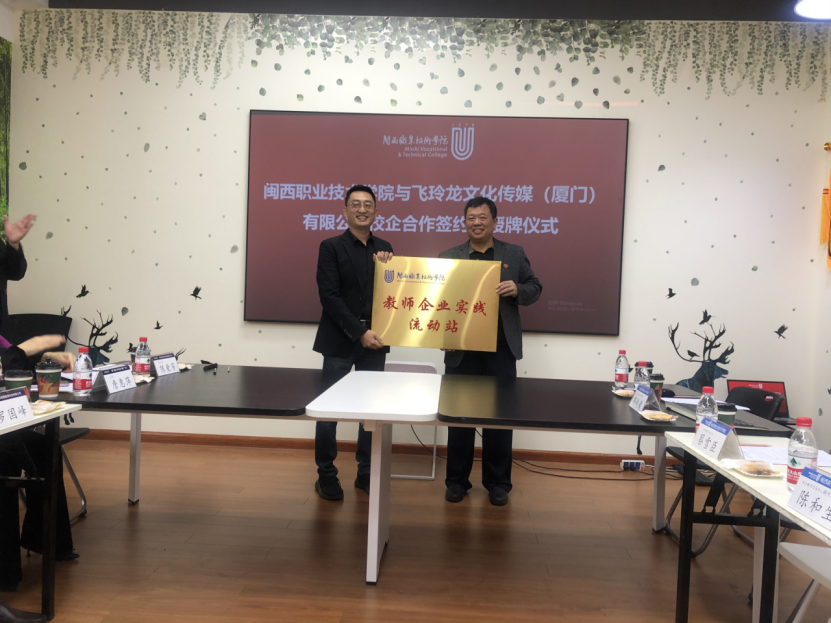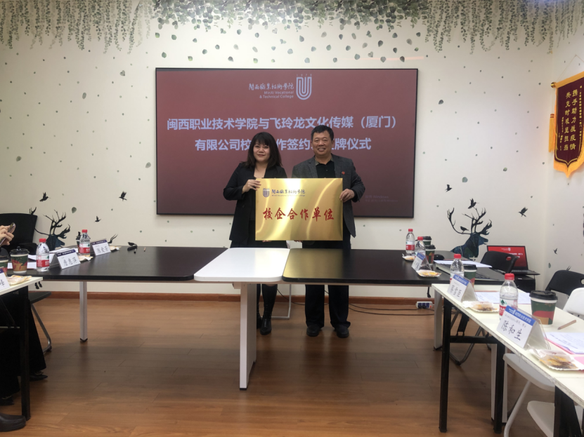 12月8日,校党委委员、副校长刘路永率对外交流合作处负责人梁玉兰、闽台职业教育交流中心负责人李学农博士以及部分教师等赴厦门与飞玲龙文化传媒有限公司(台资)举行校企合作签约、授牌暨客座教授聘任仪式。台湾人工智能发展协会理事长徐冠胜、飞玲龙文化传媒(厦门)有限公司总经理朱美萦热情接待了刘路永一行。