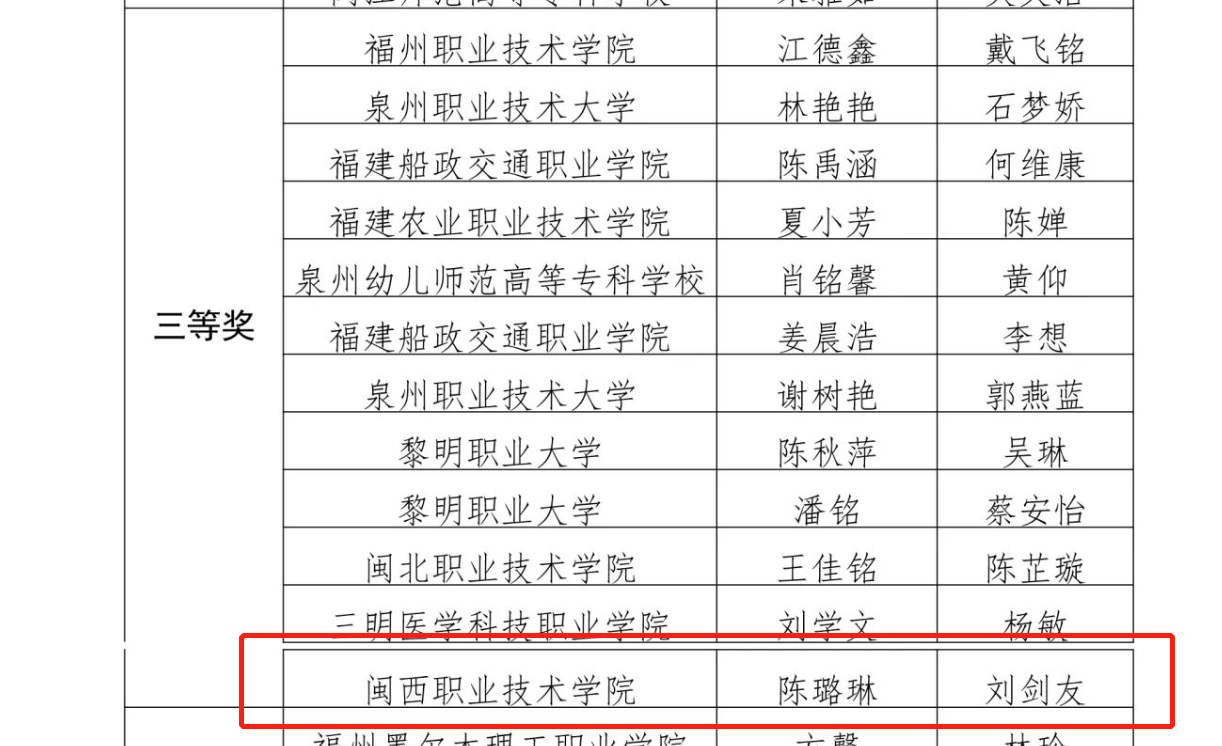 日前,省教育厅印发《关于公布第十五届福建省大学生职业规划大赛获奖名单的通知》。在校级初赛的基础上,全省84所高校共选送159件作品参加省赛,经过省赛网评和线上决赛,最终决出本科组一等奖7名、二等奖10名、三等奖12名、优秀奖5名;专科组一等奖7名、二等奖10名、三等奖12名、优秀奖5名;评选优秀指导教师奖14名,优秀组织奖14个。另向91名参赛选手发放纪念证书。